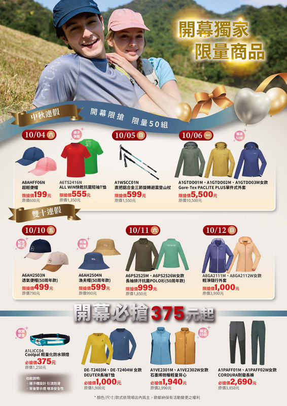 開幕必搶好物 375 元起!