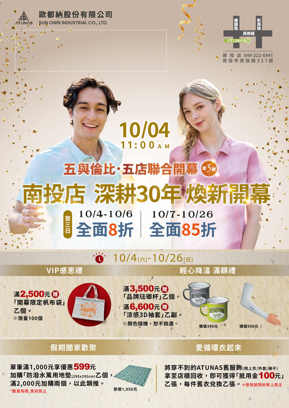 【歐都納 ATUNAS 南投店 盛大開幕】
