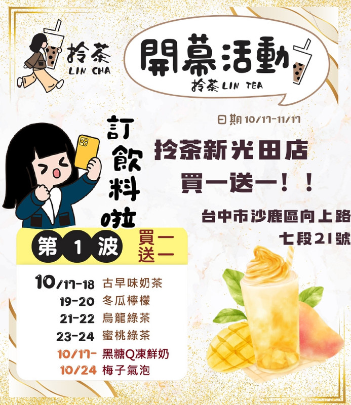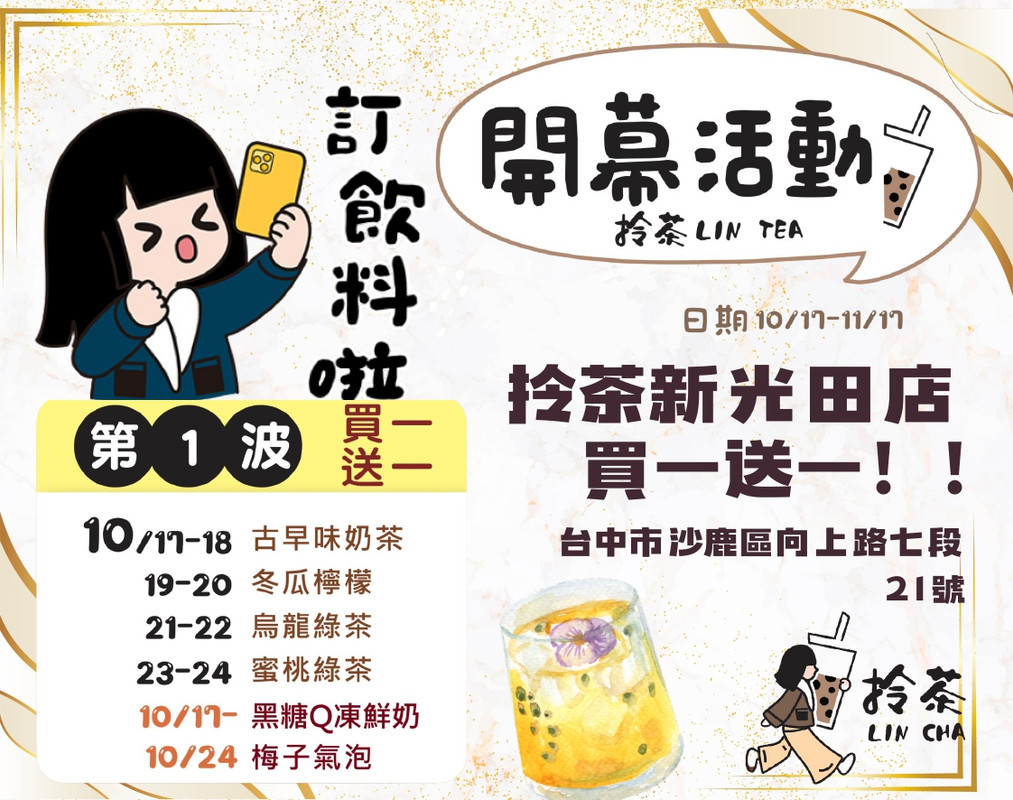 台中沙鹿 拎茶新光田店 盛大開幕!