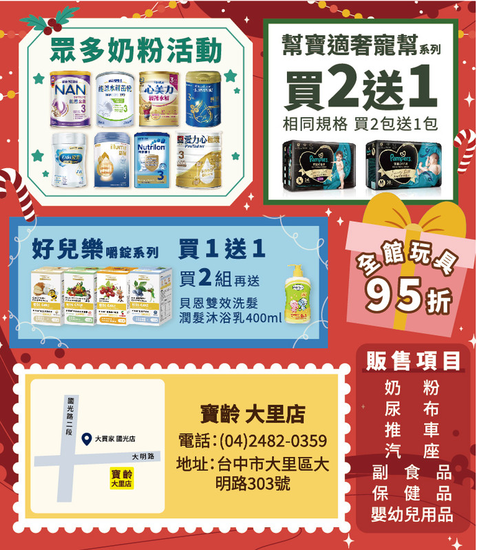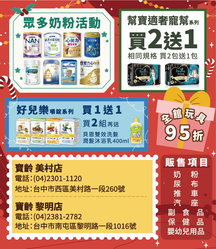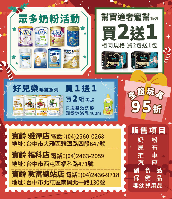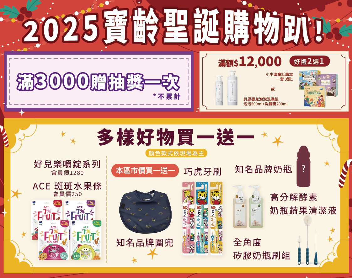 全館多重優惠一次享受,奶粉、尿布、玩具、婦幼用品一次補齊。