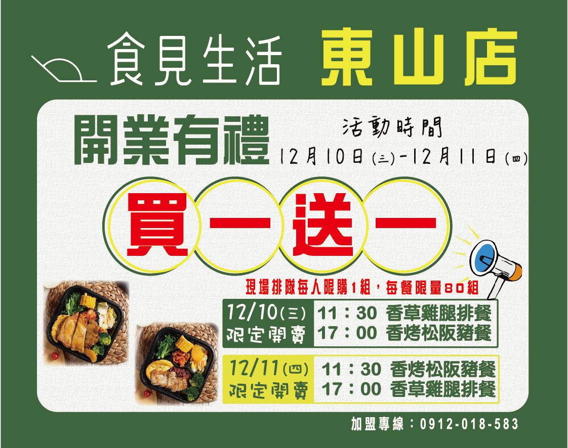 食見生活東山店 盛大開幕!開幕期間限時優惠買一送一! #開幕廣播車 #活動廣告車 #廣告服務宣傳