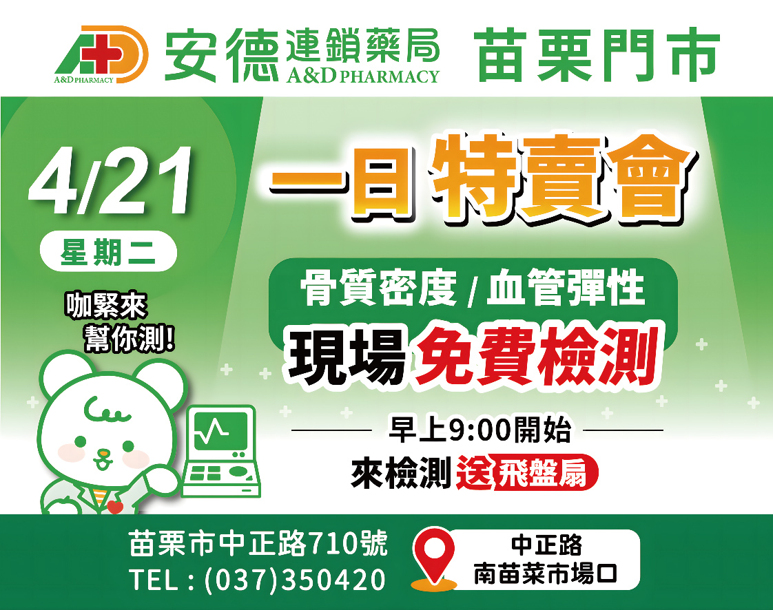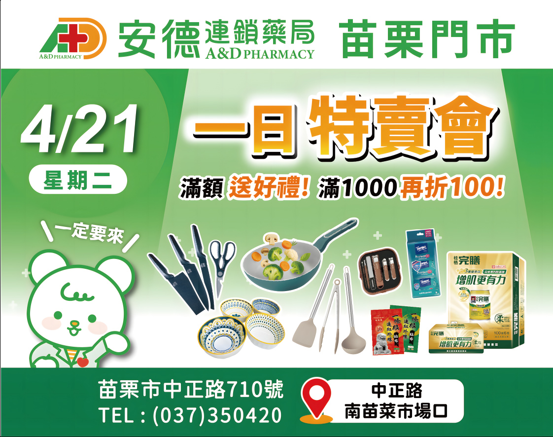 4月21號,快來安德藥局-苗栗門市!