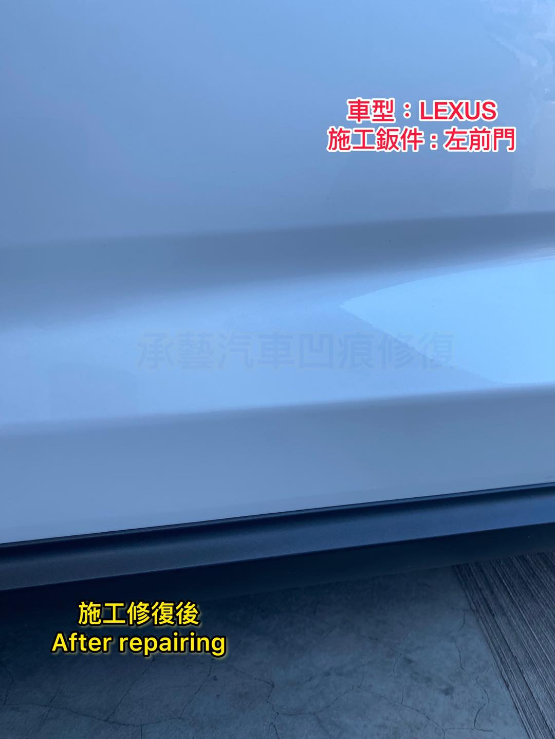 LEXUS_左前門摺線凹痕修復車主愛車施工免烤漆微鈑金修復/ 屏東 汽車 凹痕修復 推薦