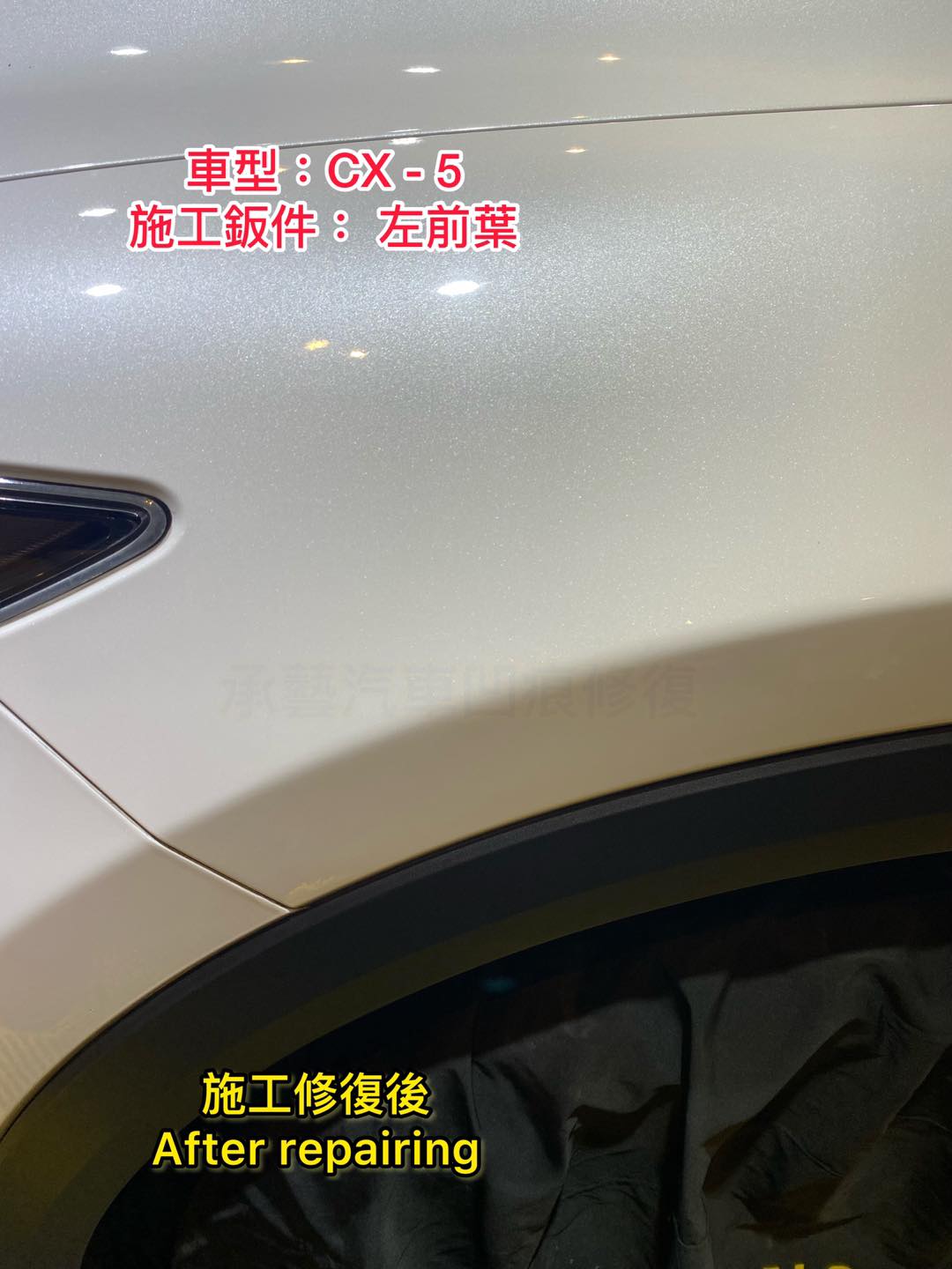 #馬自達_CX5_左前葉凹痕車主愛車施工免烤漆微鈑金修復