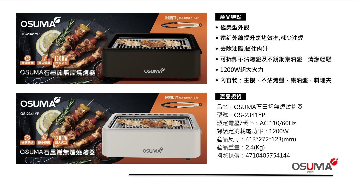 OSUMA 石墨烯無煙燒烤器(OS-2341YP)|無煙燒烤器推薦