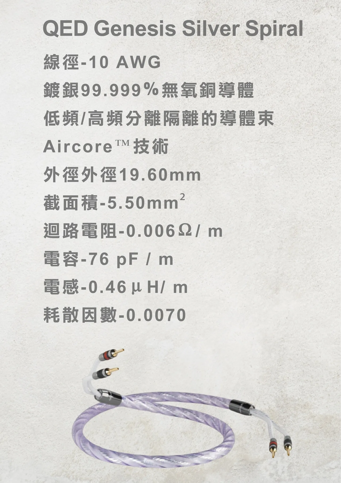 QED Genesis Silver Spiral 喇叭線,速度感與能量傳輸優異