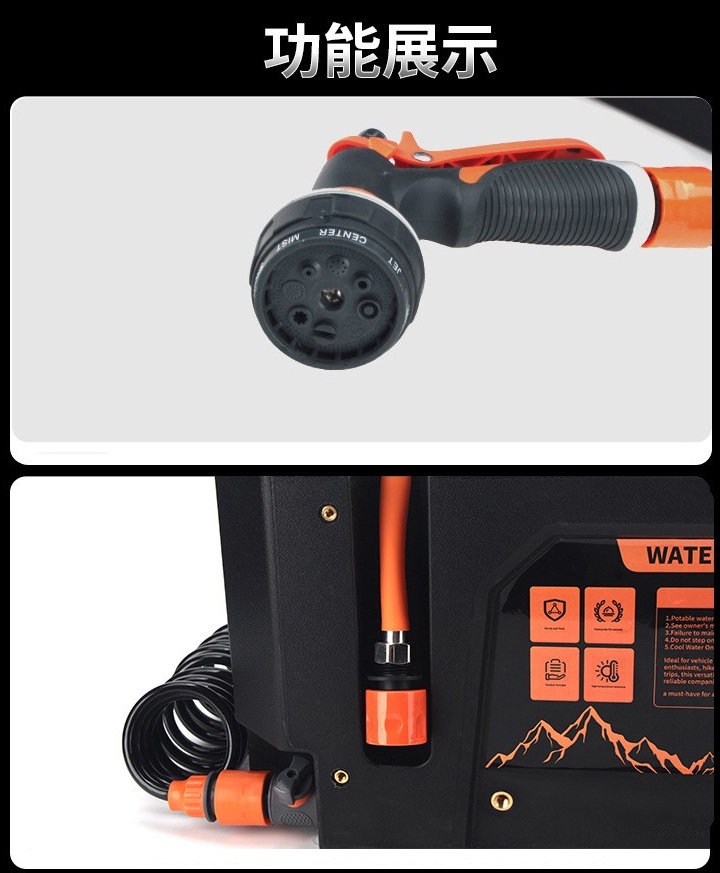電動加壓系統:內建電動水泵,提供穩定水流,無需手動加壓,使用更省力,充飽一次電可以灌3-5次水。