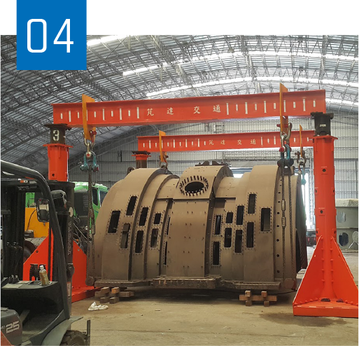 使用於局限空間吊裝,在無法使用吊車、堆高機施工的同時,龍門架的運作施工是最有力的工法,無須拆除廠房屋頂貨牆面,便能將重件器材汰換貨者移置,起重範圍從15噸至150噸物件最佳選擇。