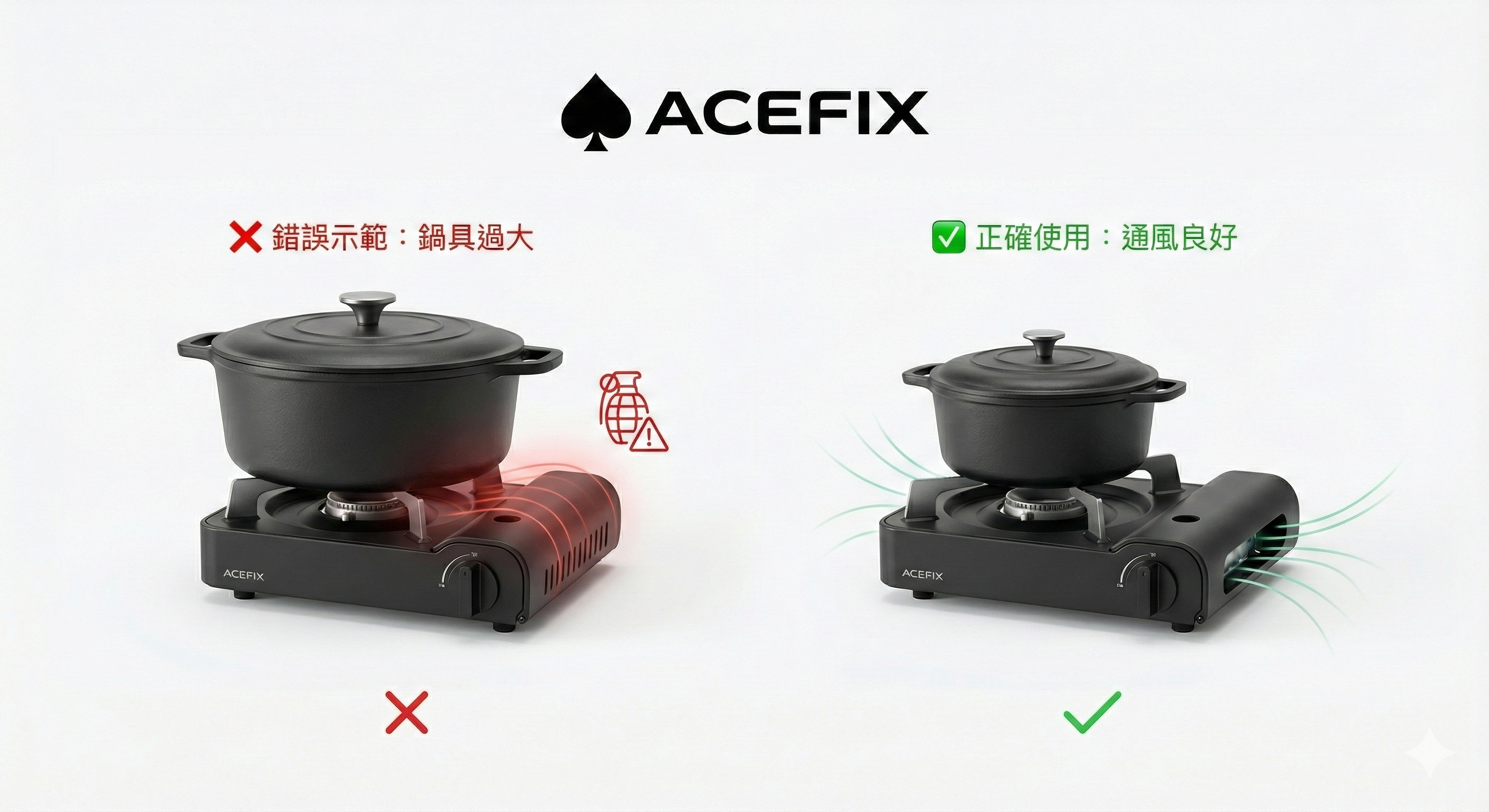 「拒併排」:絕對不要兩台卡式爐併著用一。