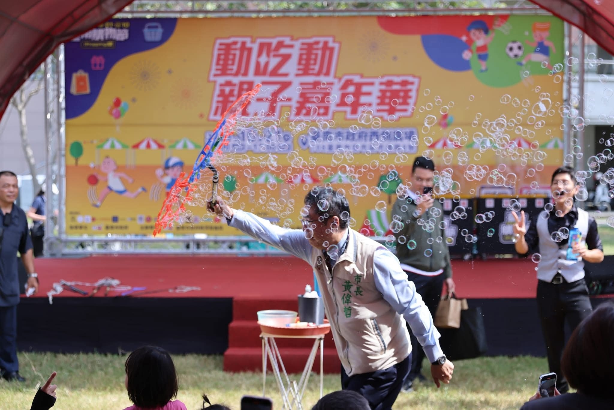泡泡秀,泡泡表演 - 大頭泡泡哥哥與台南市長一起玩泡泡
