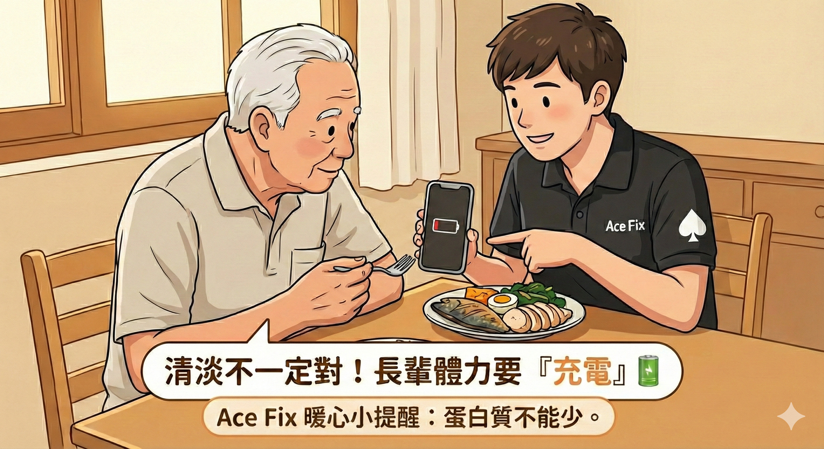 手機沒電了可以換電池,但長輩的體力需要靠日常營養來充填。
