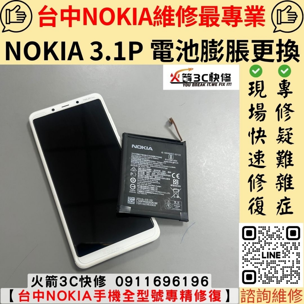 案例名稱: Nokia維修案例-台中Nokia手機現場快速維修/換電池膨脹/螢幕/主機板/泡水/受潮/不開機/不充電/沒反應/Nokia手機/現場快速維修/火箭3C快修