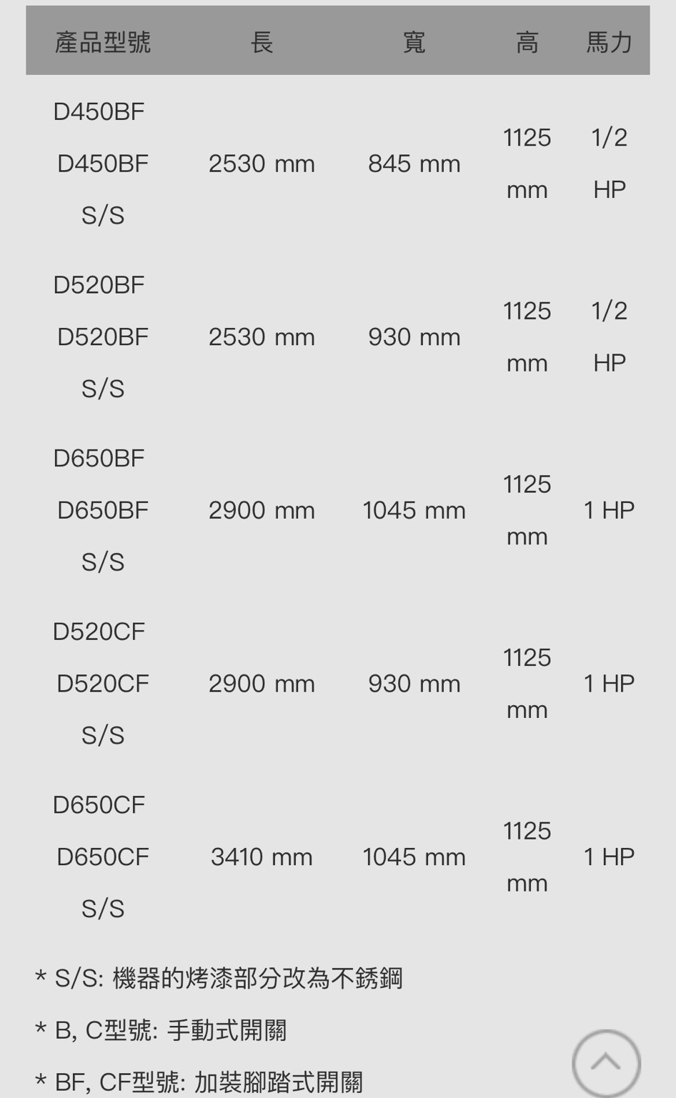 D450BF/D520BF/D650BF/D520CF/D650CF(把手向下)