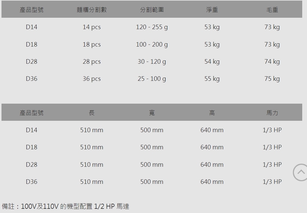 (適用於含水量60%以上麵糰,含水量低及過硬的麵糰可能無法順利分割。)