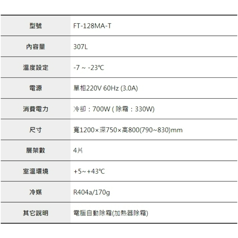 4呎75cm深工作台冷凍冰箱