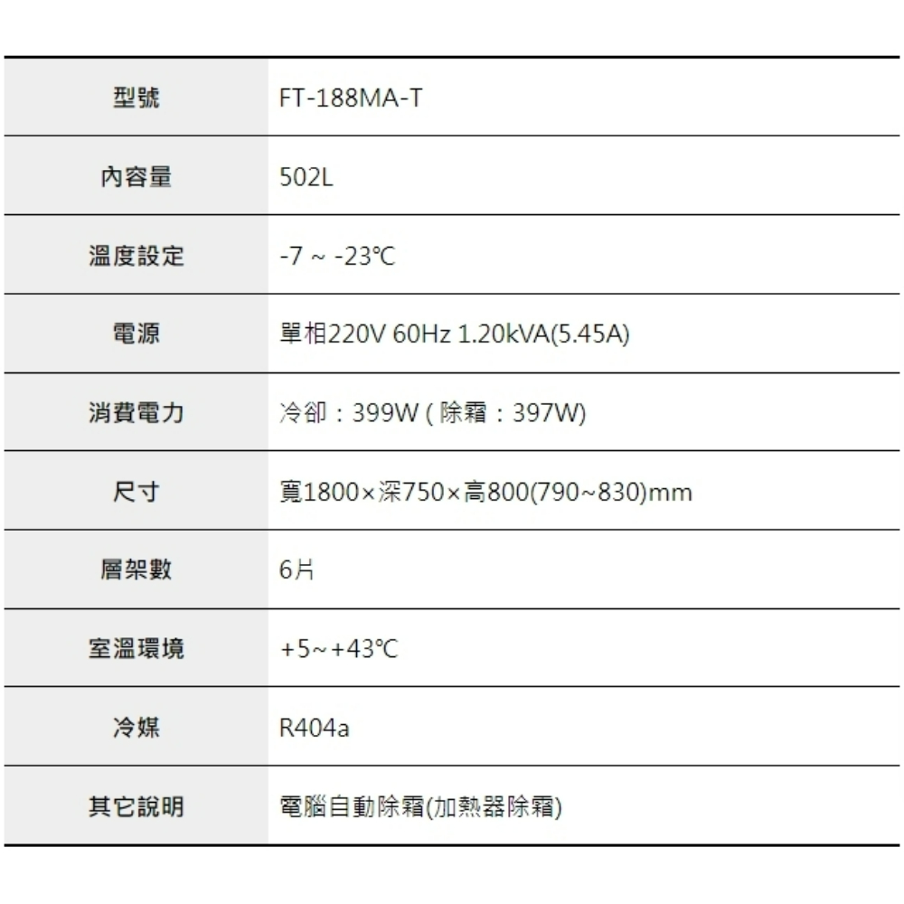 6呎75cm深工作台冷凍冰箱