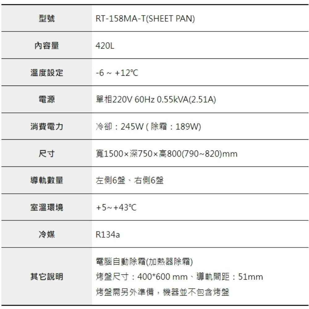 5呎75cm深工作台冷藏冰箱(插盤)