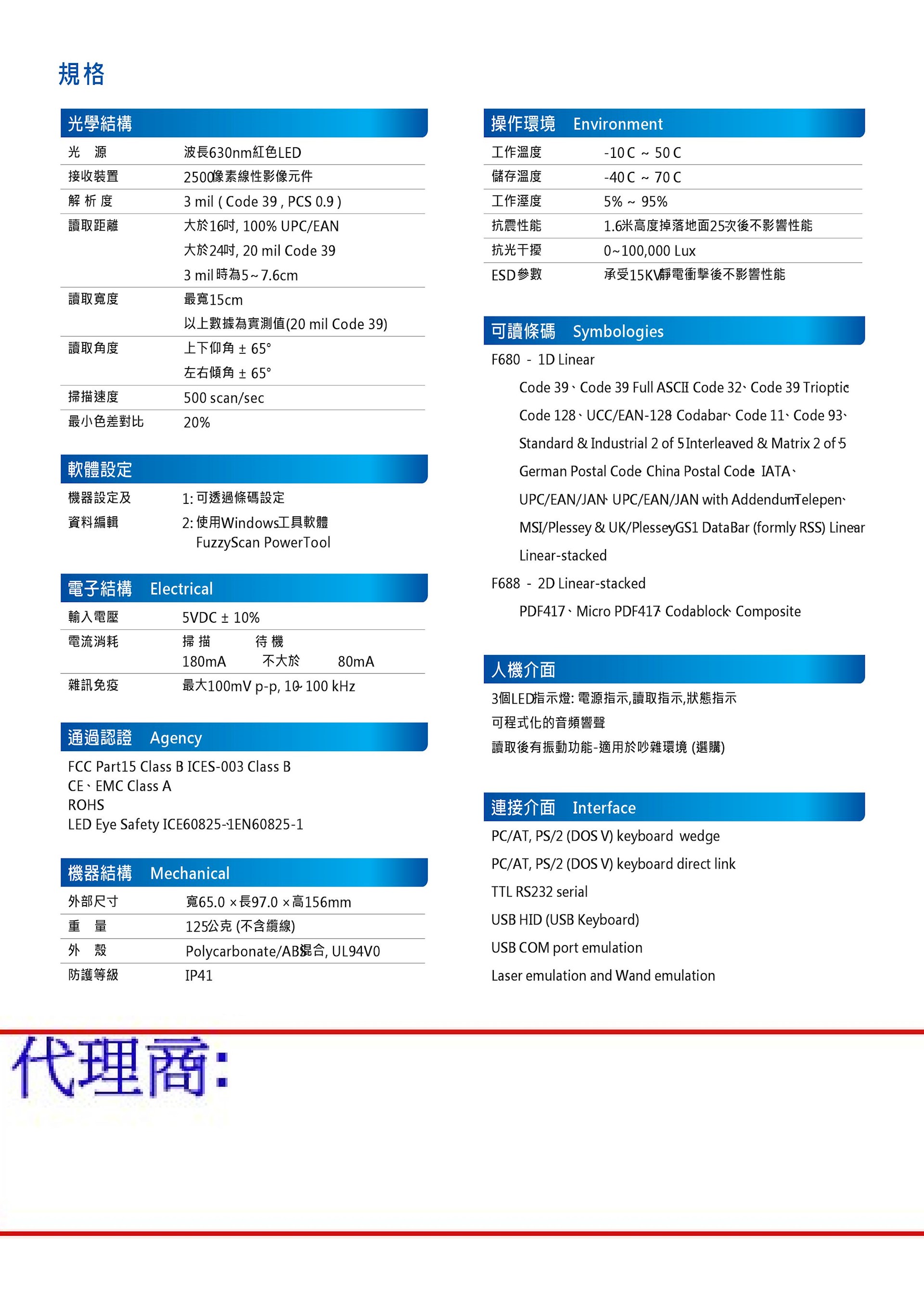 F680 Series 線性影像式讀碼機-零售和商業最適用