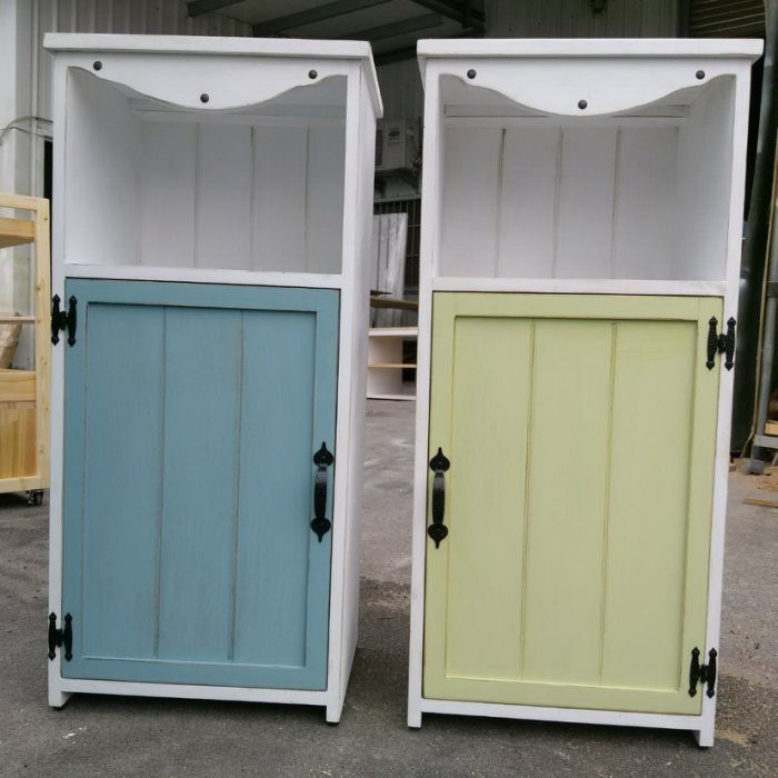 ✺ 顏色|櫃體 復古舊化白色/門片 淺灰藍色&淺蘋果綠色