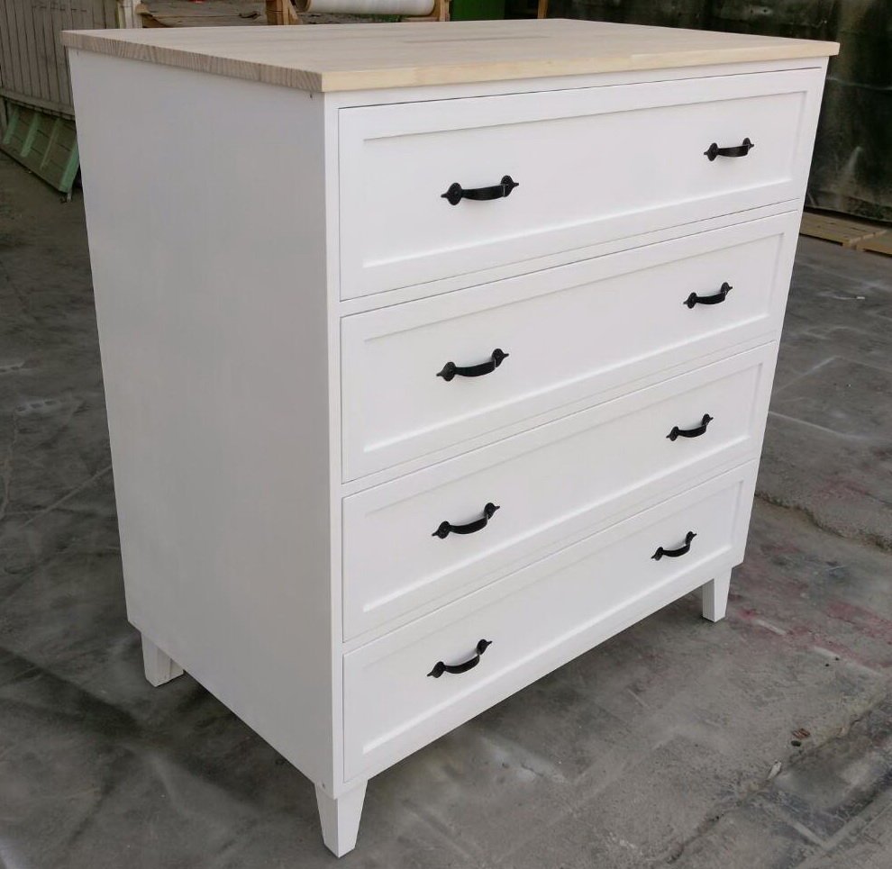 ✺ 上下均分四抽屜(面板包框造型/一般滑軌/一抽屜配兩黑色把手)