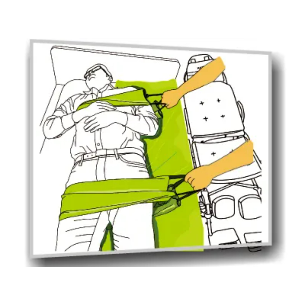仰躺平移、提供靈活、彈性的Flyer移位滑板,有效提高照顧者位移效能,輕鬆溫柔達到移位目的。
