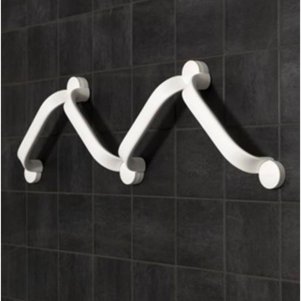 靈活性和自由度 易於附著於牆面和自由抓握 用螺絲或粘合劑固定。選擇最適合您和浴室的方法。 靈巧、簡潔設計與其他產品融為一體,您可以選擇兩種顏色-白色和灰色。 您需要的設計所需的支持 益他靈活扶手的材質及其精心設計的形狀和表面, 即使你的手或手柄是濕的,提供了穩定的抓地力。