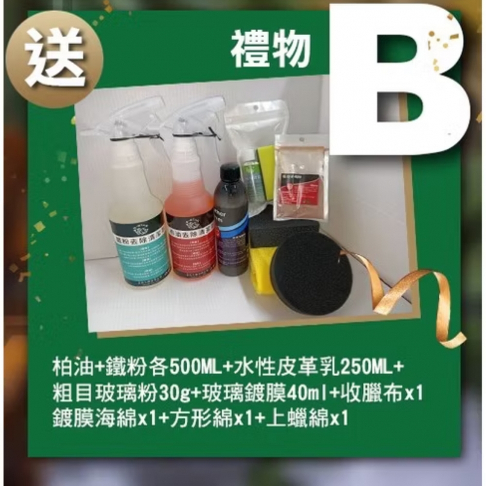 B方案:買T8鍍膜臘 贈送柏油+鐵粉各500ML+水性皮革乳
