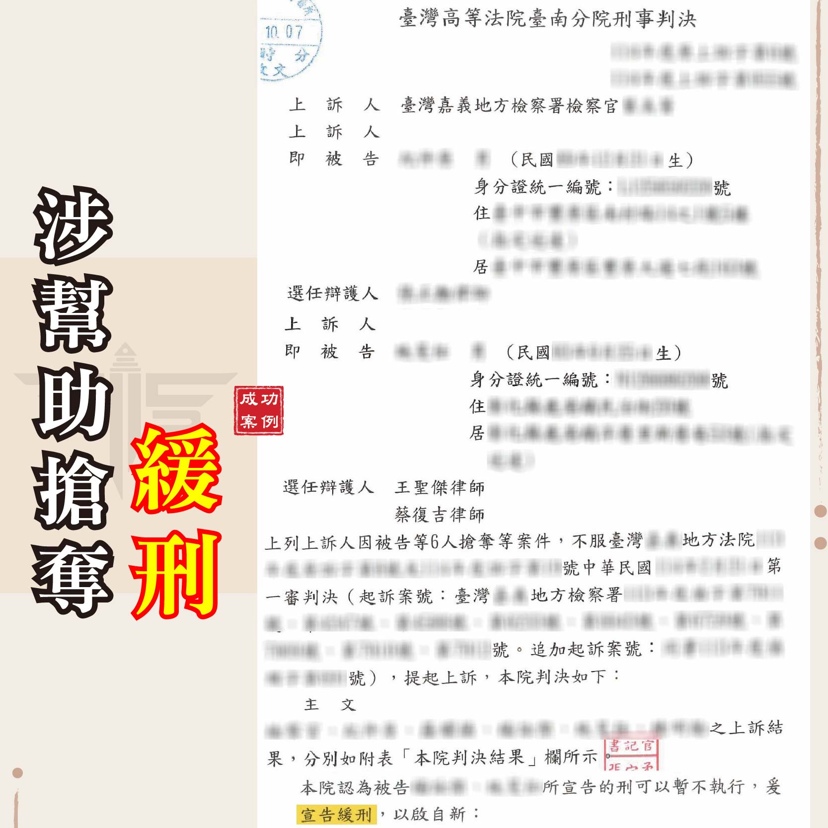 汽車借友人卻涉搶奪案(臺南高分院 1141007)