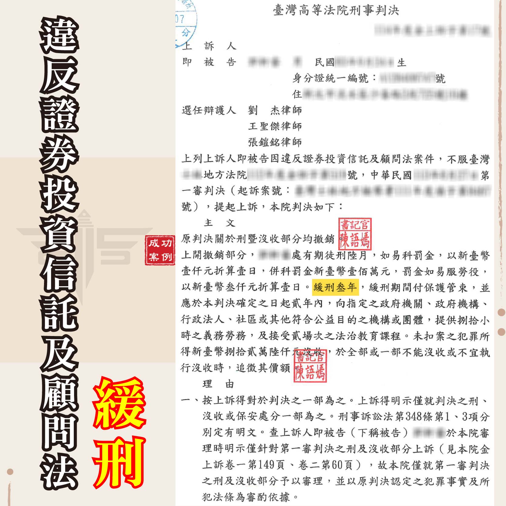 遭控違反證券投資信託及顧問法(高等法院 1141007)