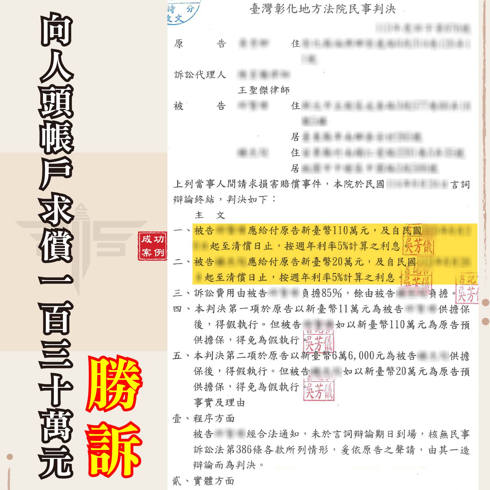 向人頭帳戶求償130萬元(彰化地院 1141007)