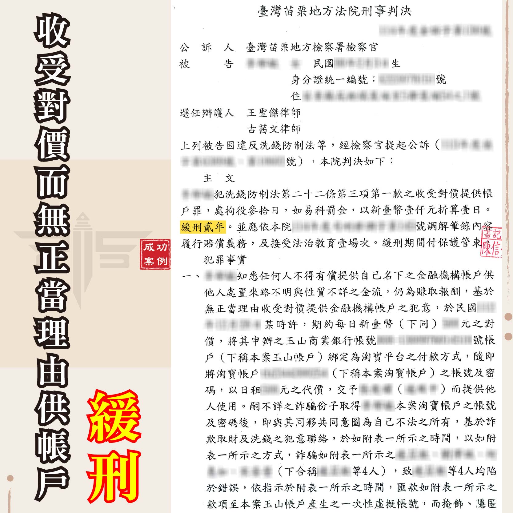 出租淘寶帳戶給友人用(苗栗地院 1141008)