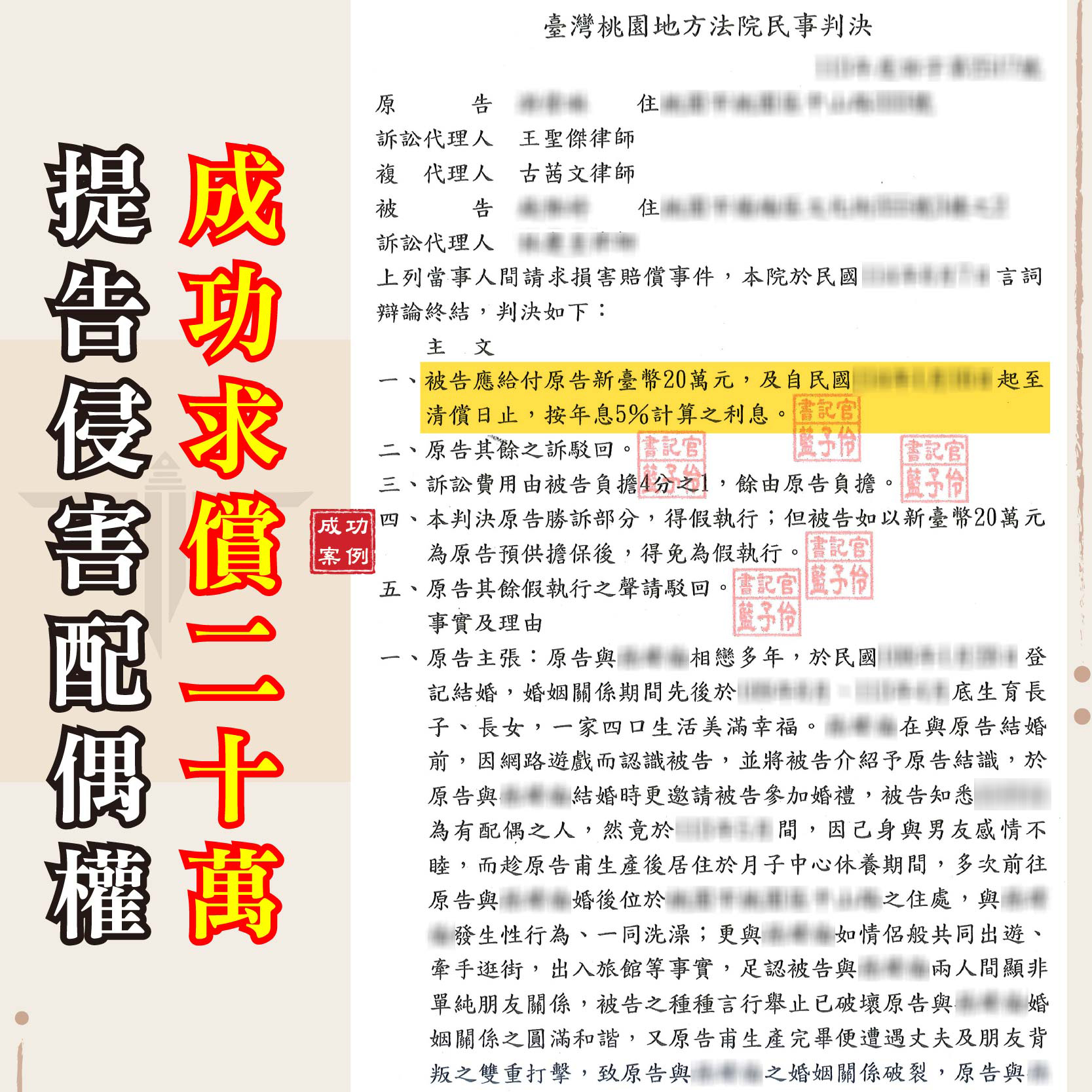 向第三者提告侵害配偶權(桃園地院 1141008)