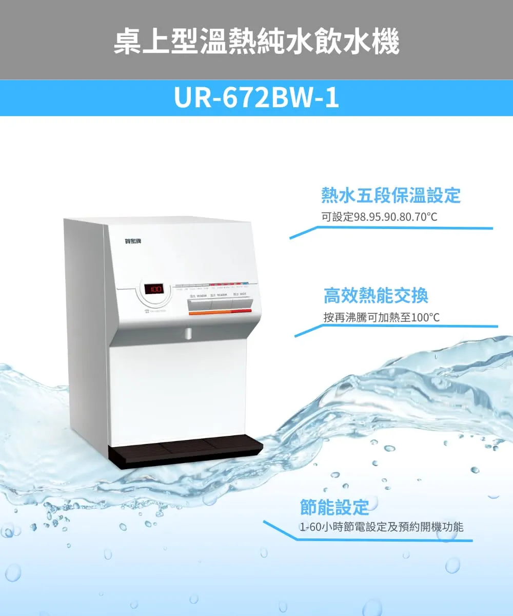 賀眾牌 桌上型溫熱純水飲水機UR-672BW-1+年份濾芯組(主機含濾芯/含基本安裝/原廠服務)