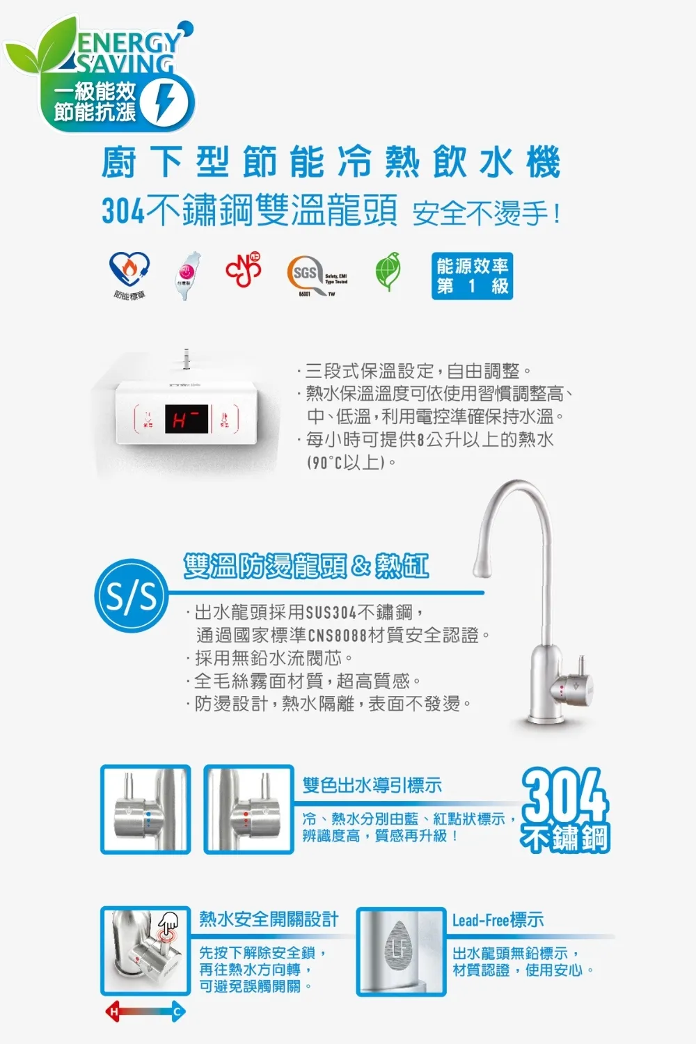 賀眾牌 UW-2262HW-1+UR-5912JW-8廚下型淨水方案(全濾芯NSF認證/廚下加熱/無桶RO/原廠)