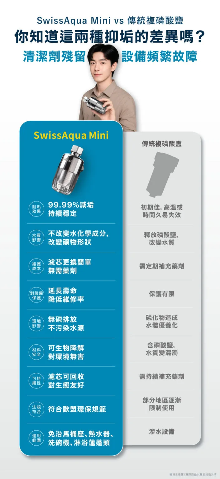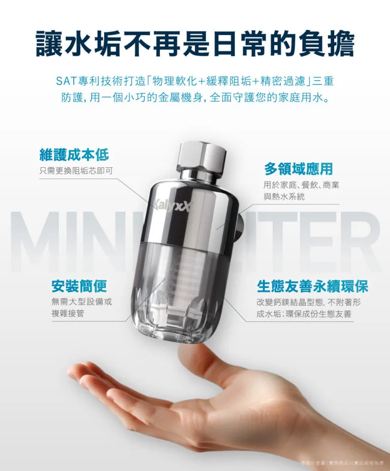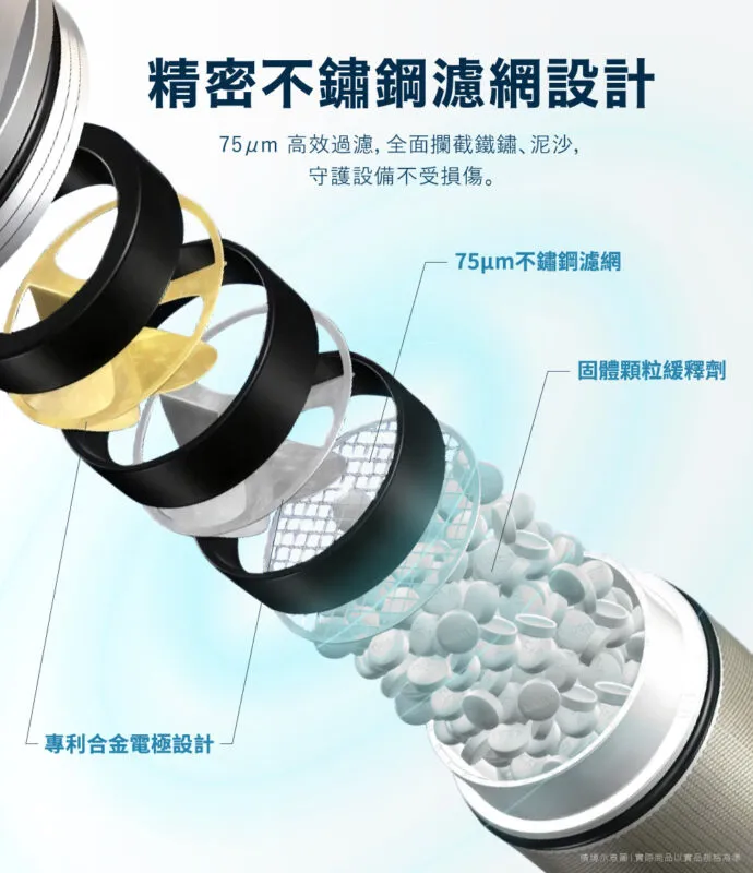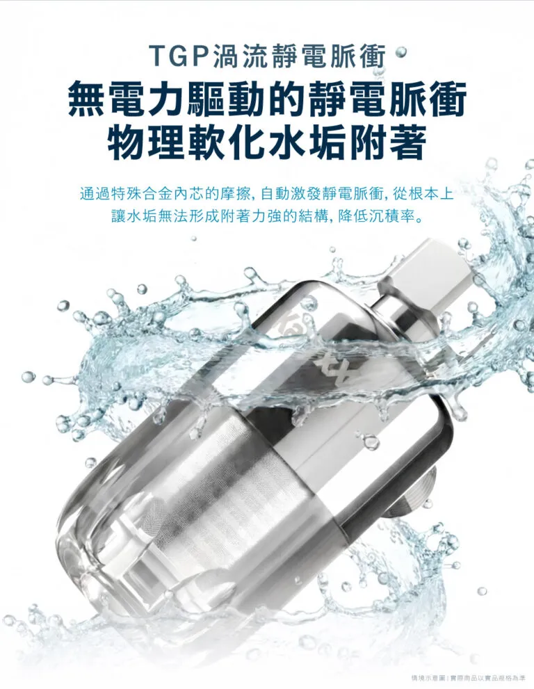 2. 三重防護:同時具備「物理軟化 + 緩釋阻垢 + 精密過濾」,全面守護家庭用水。