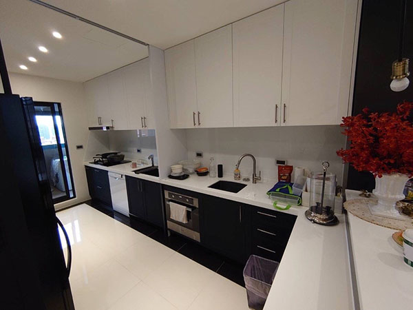 簡易線條的門板造型,勾勒出歐式古典的味道,上下雙色的搭配讓色澤更清亮鮮明,結合新穎的廚房家電,塑造出既溫馨又時尚的廚房空間,高端的強光&活氧雙驅蟑系統,定時輸送強光&活氧於每個櫃體驅離蟑螂、消除櫃內異味,讓廚房不再是小強的天堂,無形之中保護全家人的衛生健康。