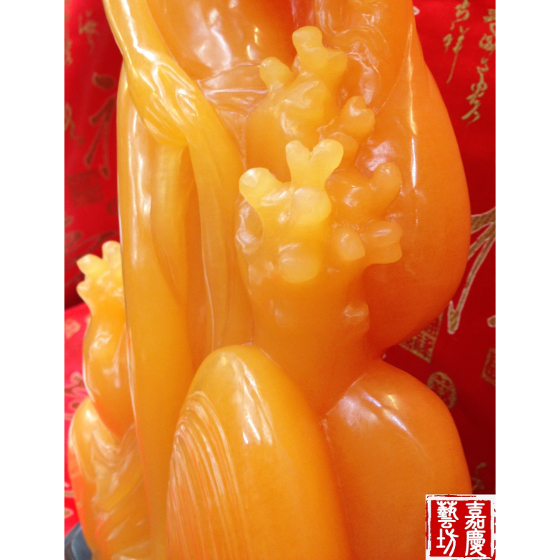 含底座 附證書 尺寸:約20*7*37cm ● #圖片上皆有標示尺寸哦 金田黃 明亮度高、透度高質、地...