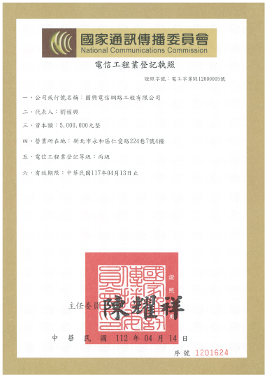 本公司成立於民國八十九年,為反應時代的變化趨勢,及能更廣泛的服務大眾客戶,於民國一百年更名為【國興電信網路工程有限公司】,經營性質更為廣泛且多樣化。
