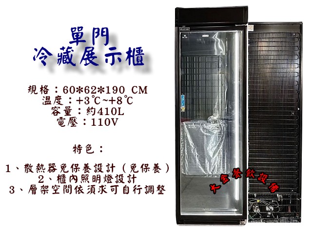 全新單門玻璃冷藏展示櫃/台製單門展示櫃/約410公升/冷飲冰箱/玻璃展示冰箱/商用冷藏櫃/營業用冰箱