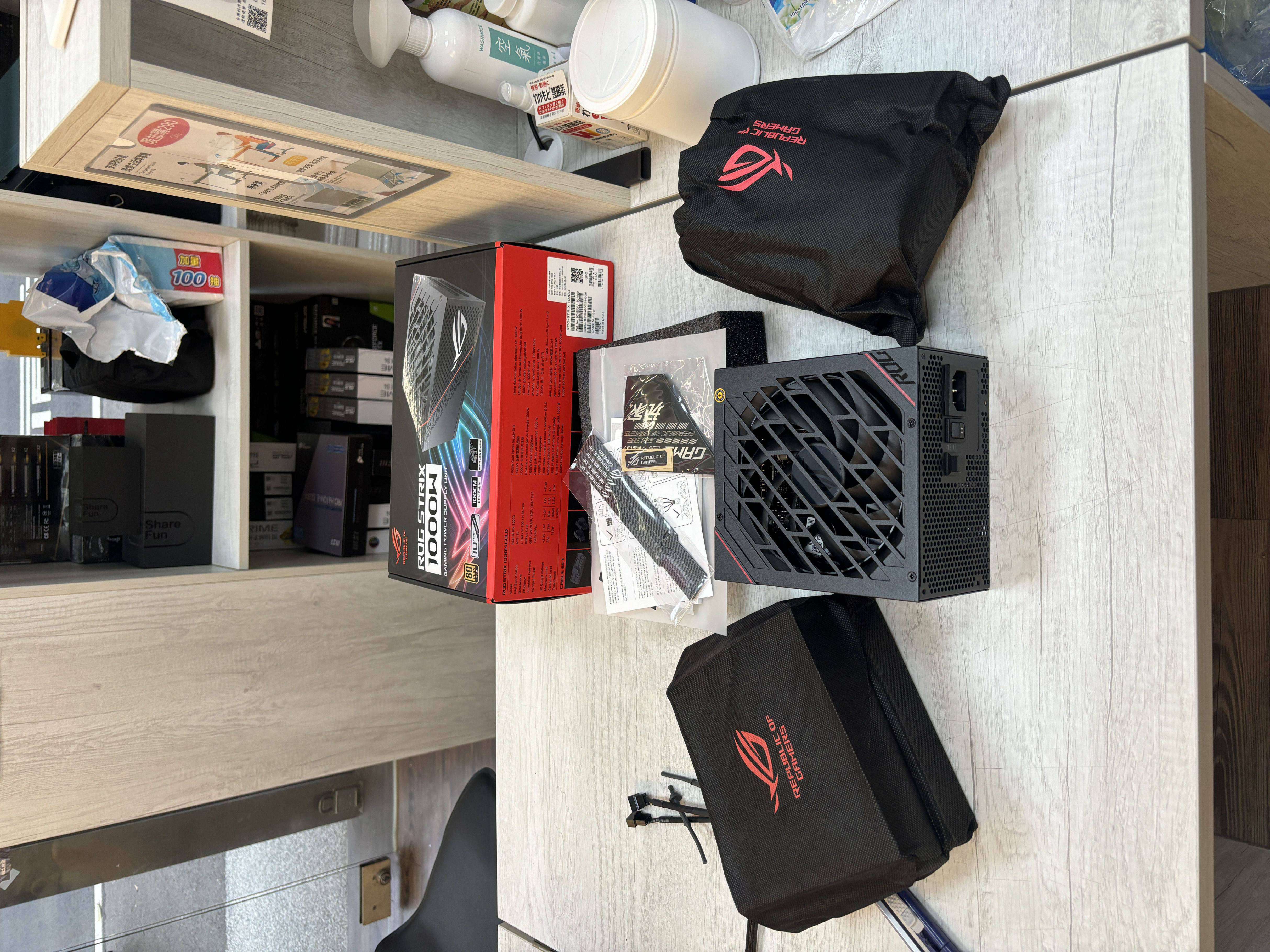 電源選擇的是ROG STRIX 1000W 金牌,裡頭有很多ROG專屬的貼紙,還有擴充的配線。
