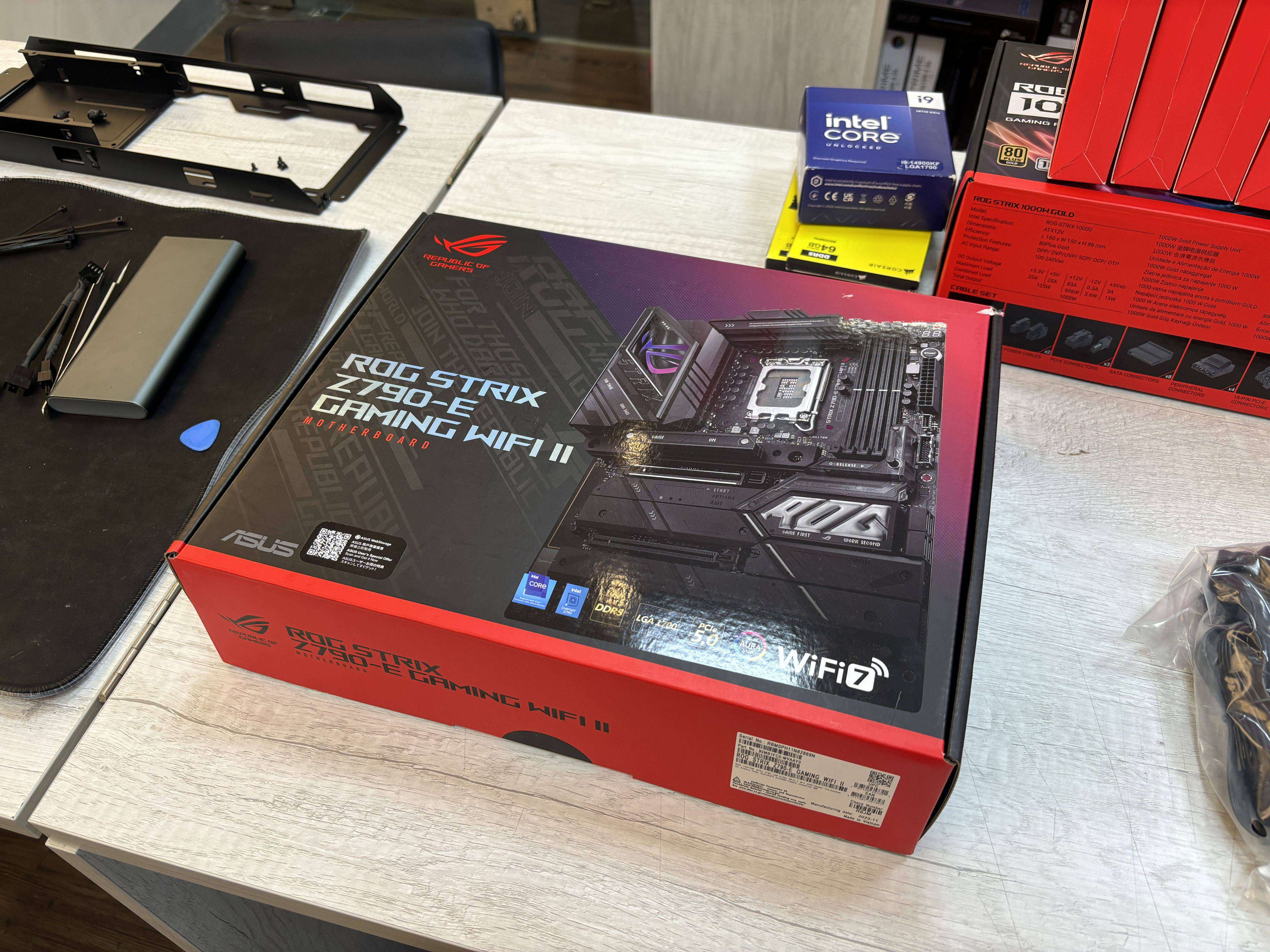 首先就來介紹主機板先吧~這次客戶採用的是ROG Z790-E WIFI ll代,除了有強大的電源18+1+2供電之外,還有支援PCIE5.0(當然前提是要有錢購買硬碟喽~),當然土豆覺得最有幫助的設計就是PCIE的開啟槽,可以用按鈕式方式取出,不得不說越來越友善了呀!!