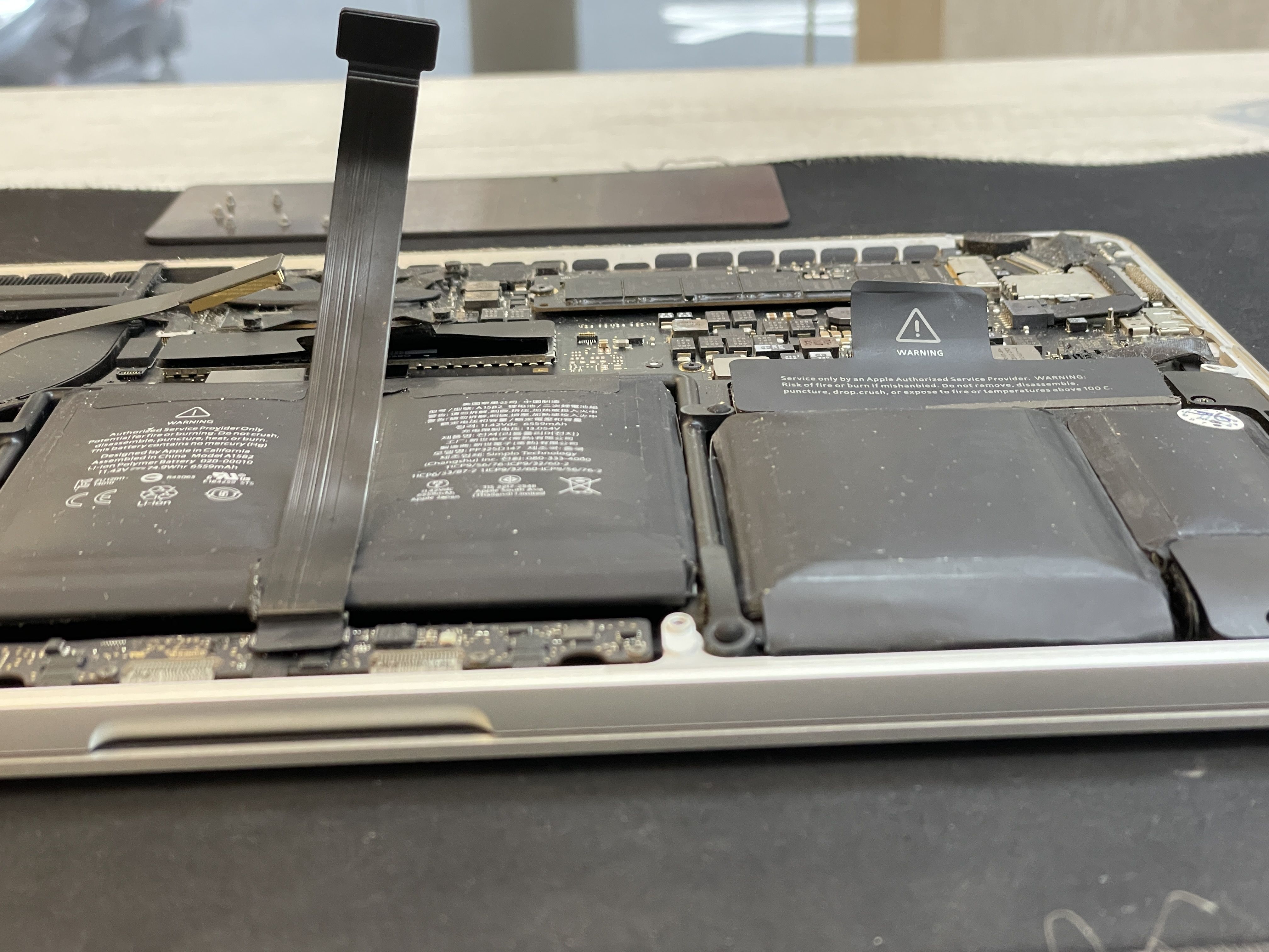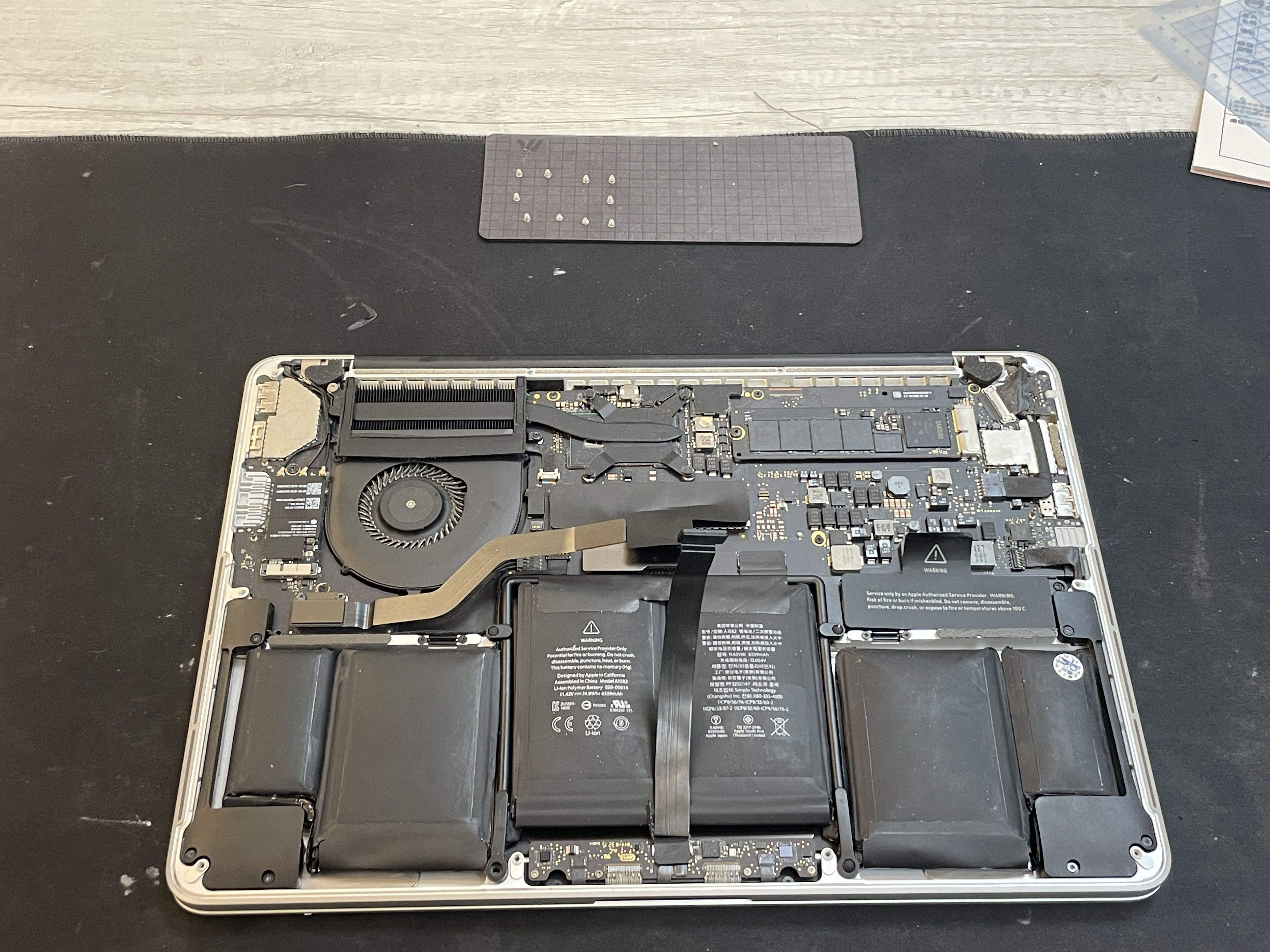 因為手邊剛好有台這樣的案例,所以拿來分享下,這是台A1502,放眼望去~OK,應該就是有換過電池了,哈(而且還有膨脹)。