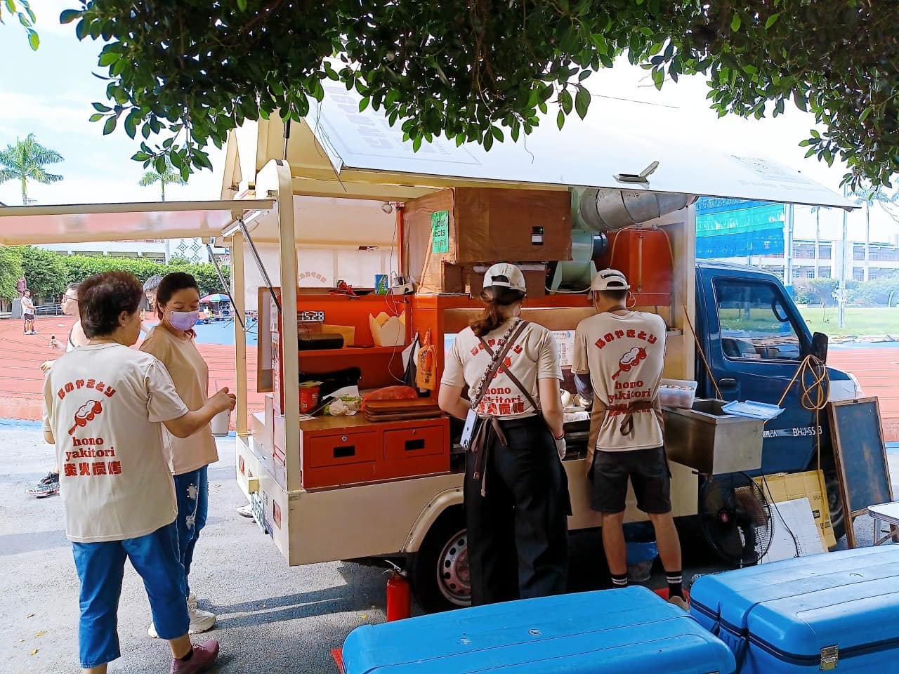這天豔陽高照,炎火炭烤來到了秀水國中服務籃球比賽的國、高中生及社會組人士