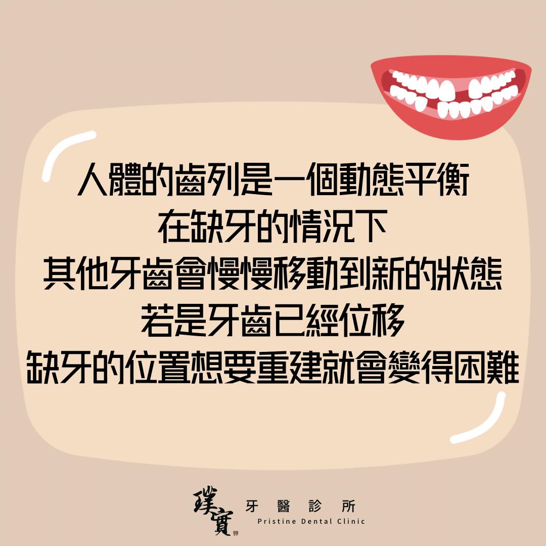 一旦缺了牙,失去了一個平衡,我們的牙齒就會再默默地移動到一個新的平衡