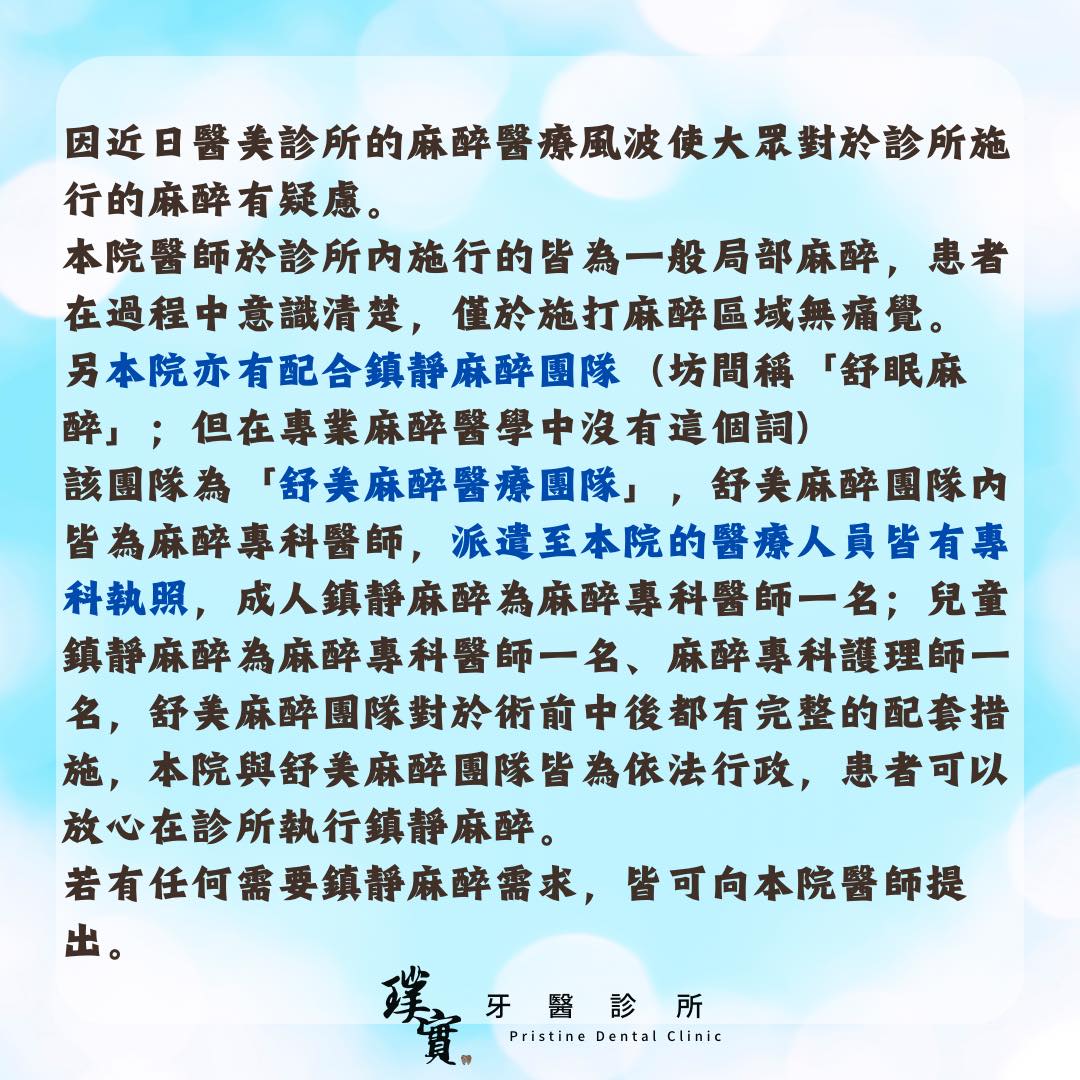 因近日醫美診所的麻醉醫療風波使大眾對於診所施行的麻醉有疑慮。