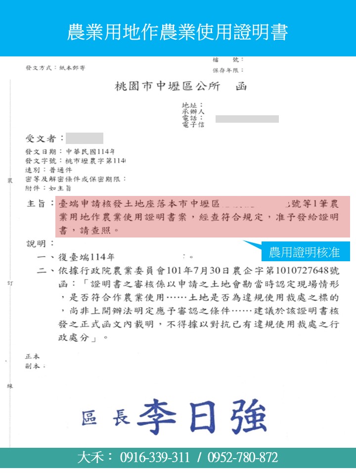 核准函系列146》這算農用? |桃園土地代書|桃園土地變更|桃園寺廟用地變更
