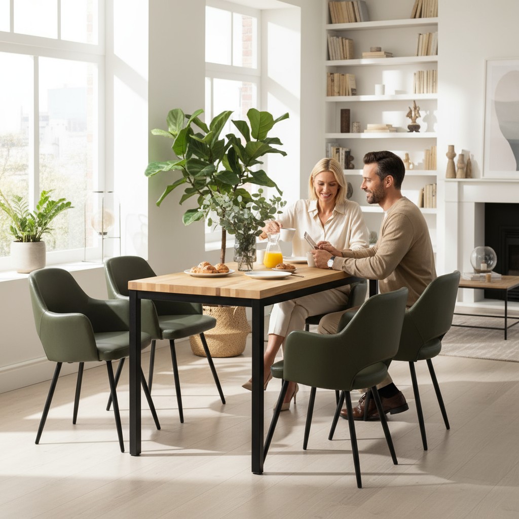 岩板桌 × 黑鐵腳餐椅 → 現代俐落風格