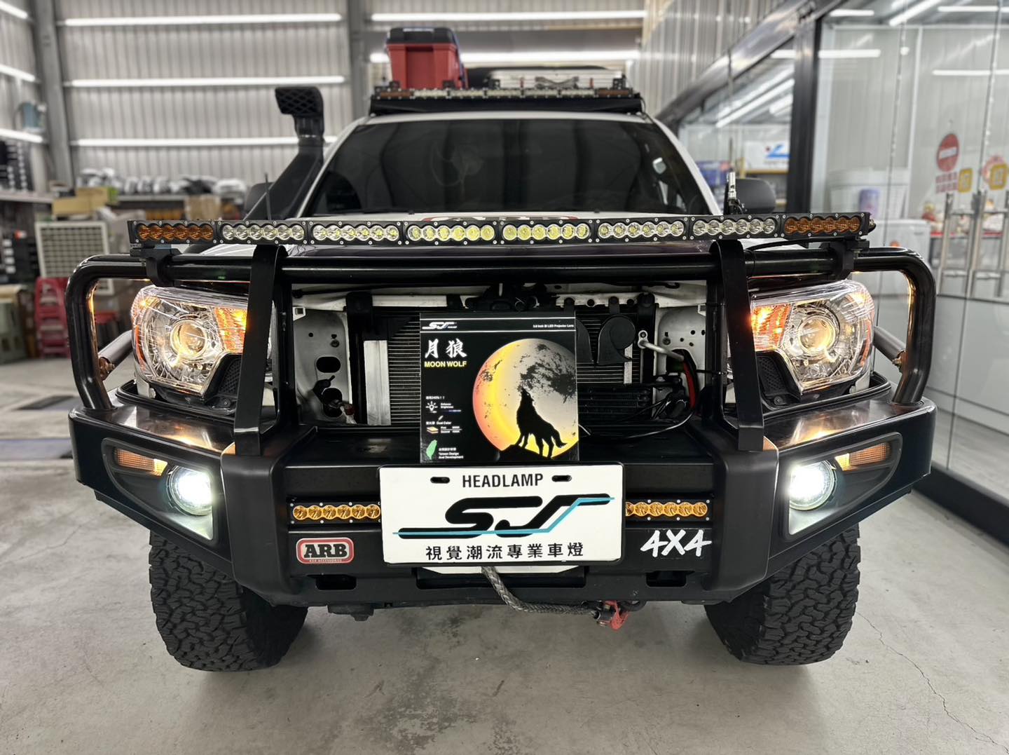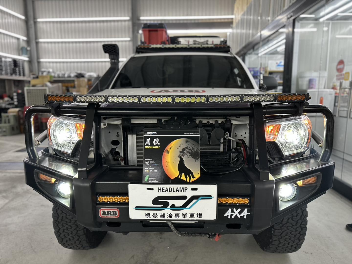 搭載SJ系列-月狼LED魚眼,搭配切換功能,由於車主非常喜歡露營及朔溪,照明與防水就是一大挑戰