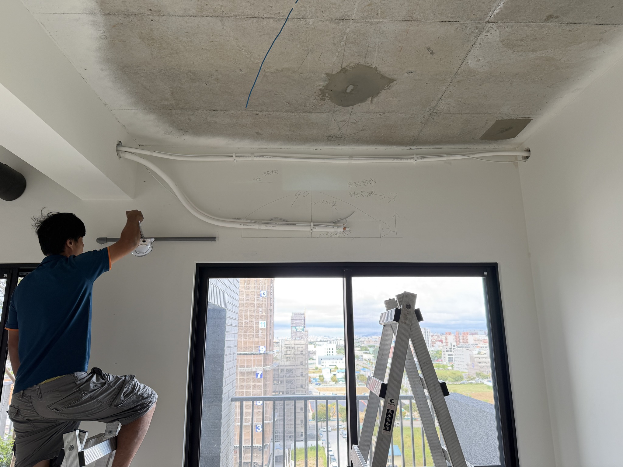 室外機管槽施工:不只是把管塞進去,管槽的封閉性與線條美感,才能對得起社區的質感建築,同時保護銅管不受日曬雨淋。