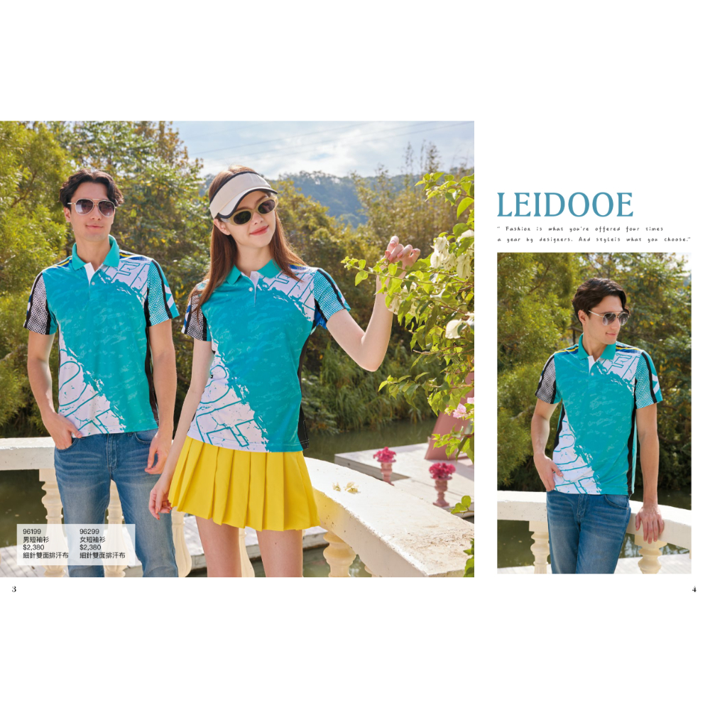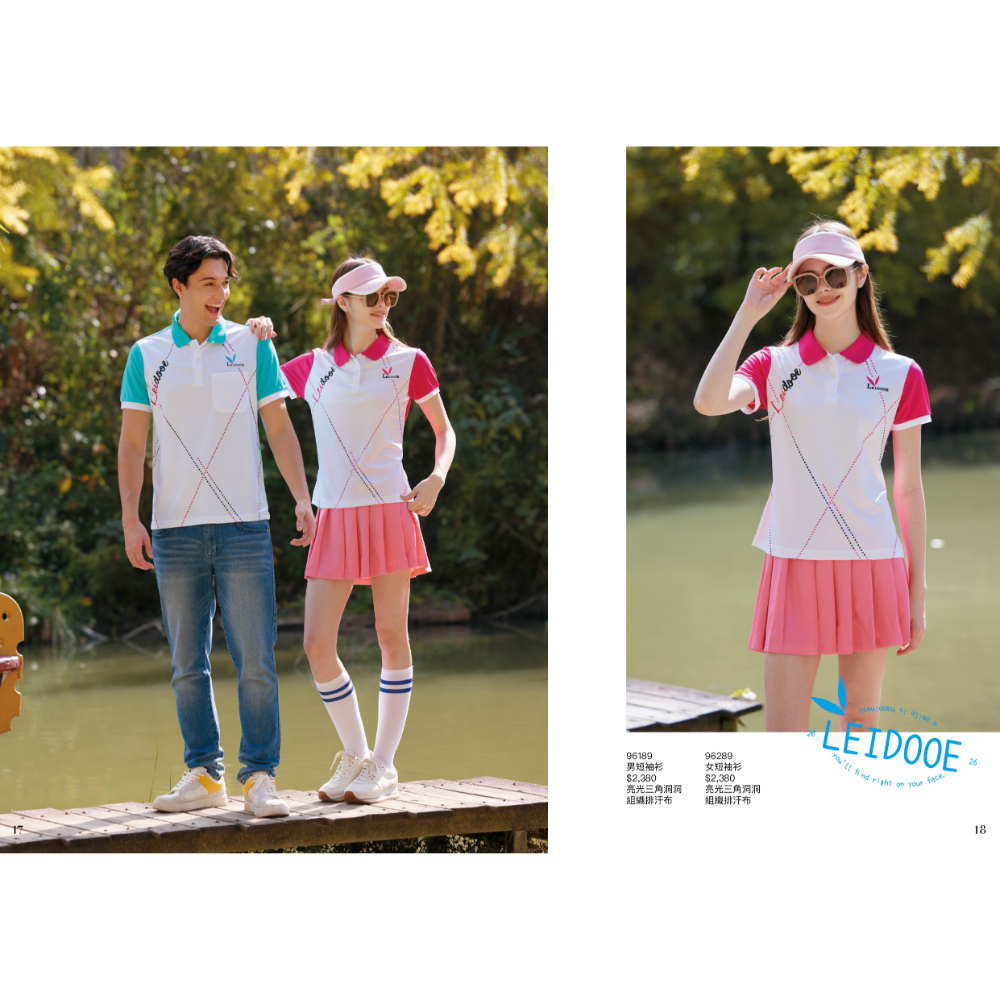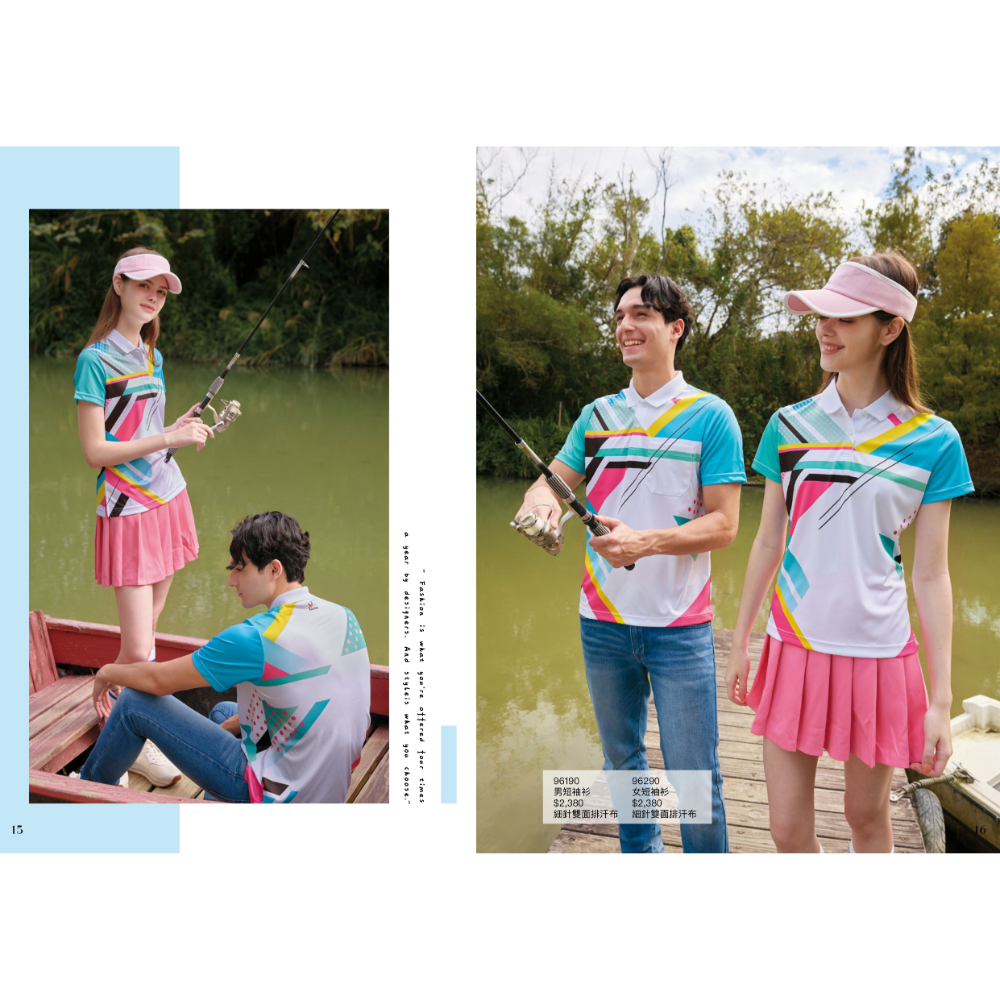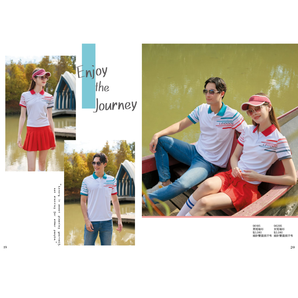 此種效果,讓團體服/休閒服布料多了立體的風格,接著應用畫龍點睛式的設計法,將不同色系的線條,表現在肩線和公主線(女版),衣身線(男版)上,讓整件衣服看起來,俐落大方,時尚年輕。由於我們材質選用的是涼爽的排汗布,所以此件作品,在夏天穿著,不但擁有外在美,內在美的功能我們也兼顧到了。除了團體服外,更廣闊運用在,例如: